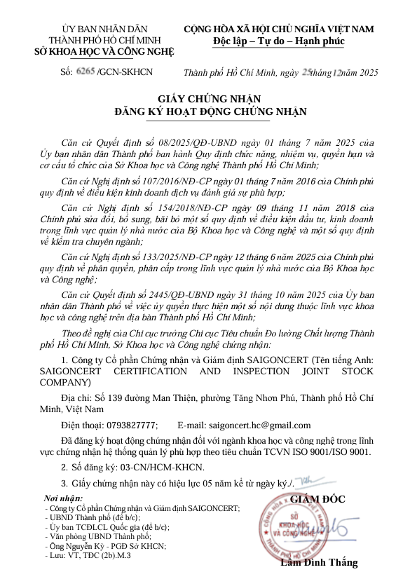 TRANG CHỦ / Giấy chứng nhận đăng ký hoạt động